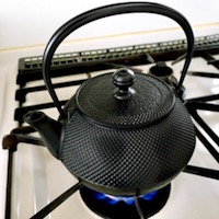 お湯はね、これで沸かすのですよ。スチール、鉄、鋳物です。盛岡で購入した岩鋳の「あられ」が毎朝のルーティーン。鉄分取ってますか、おまじないです!