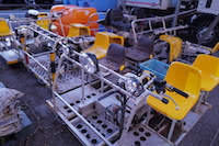 ジムに行く途中、ジェイアールの高架下に置いてあるコレは何。大町のスペイン料理屋さんのシェフが調べてくれました、分割式軌道自動自転車。自転車といいつつエンジン付きである、自動とつくのがミソなのね、乗りたい!ここの置き場には新品の黄色い踏切セットが木のフレームに入れられて保管されていて、通るたびに触ってみたい衝動にかられますねぇ。